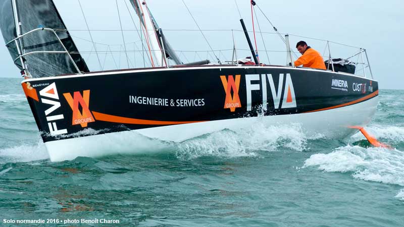 A 10h12, GROUPE FIVA a coupé la ligne d’arrivée. Alexis Loison gagne ainsi la Solo Normandie 2016, après l’avoir remportée en 2012. Le 2e, Damien Cloarec sur SAFERAIL, passe à 10h21 et, à 10h29, Alan Roberts sur TBD prend la 3e place. Coup de chapeau à Justine Mettraux sur TEAMWORK 4e à 10h39 et 1re bizuth de la course ! -